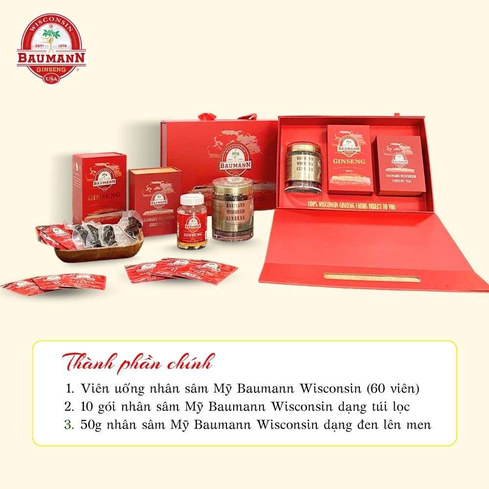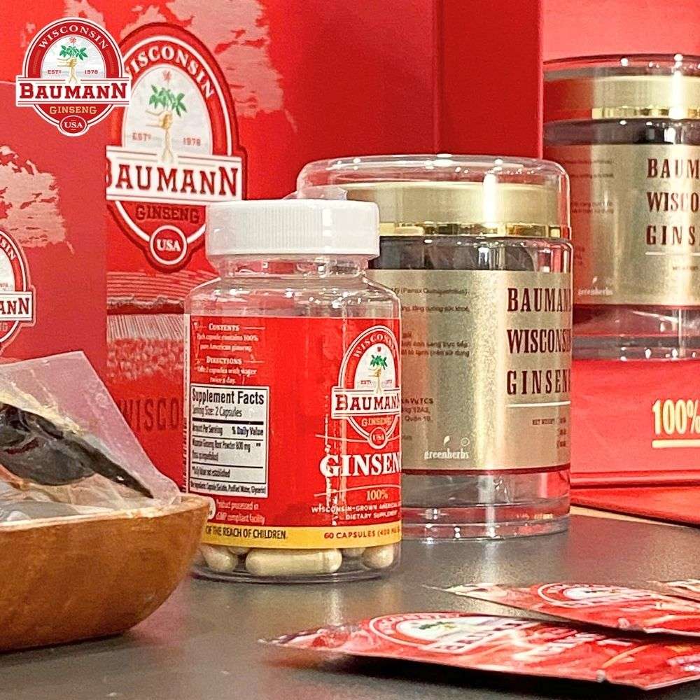 - Nguồn gốc minh bạch: Nhân sâm Baumann Wisconsin – gia tộc hơn 3 thế hệ canh tác tại Hoa Kỳ, bảo chứng chất lượng.