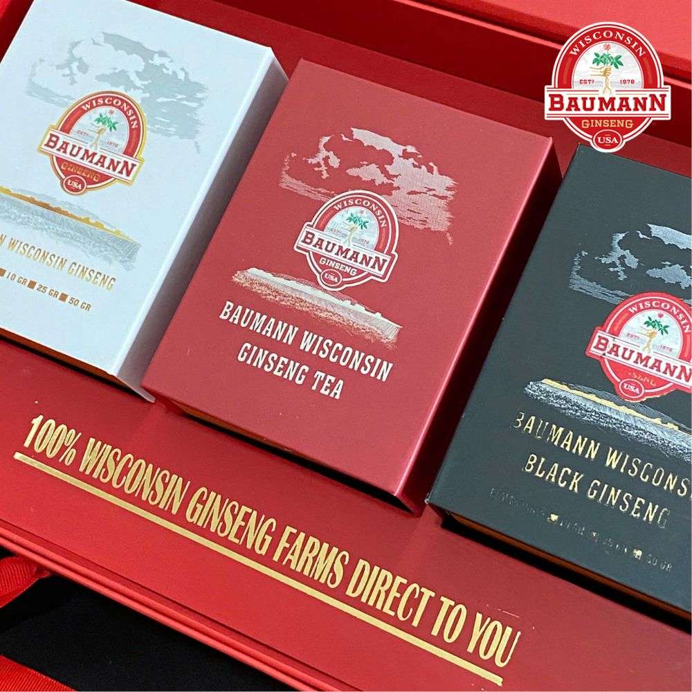 Sản phẩm được sản xuất 100% từ nhân sâm Baumann trồng ở Wincosin – Mỹ.